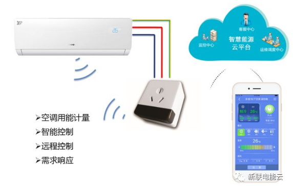 除中央空調(diào)智能控制系統(tǒng)外,針對分體空調(diào),新聯(lián)電能云可提供通過智能空調(diào)插座進(jìn)行分體空調(diào)控制,將分體空調(diào)用能計量、智能控制、遠(yuǎn)程控制、需求響應(yīng)等功能的納入非生產(chǎn)性負(fù)荷管理總體調(diào)節(jié)方案。全方位覆蓋非生產(chǎn)性負(fù)荷中的空調(diào)的柔性/剛性調(diào)節(jié)。