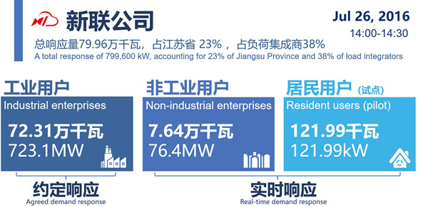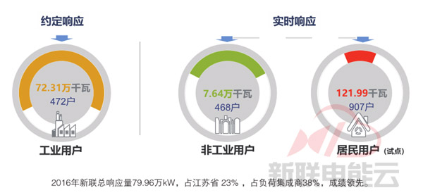 2016年新聯(lián)總響應(yīng)量79.96萬(wàn)kW,占江蘇省 23% ,占負(fù)荷集成商38%,成績(jī)領(lǐng)先。