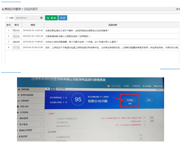 某飲料有限公司通過用電體檢留言:當看到某監(jiān)測點三相不平衡時,該如何消除此報警或以后如何避免? 分路數(shù)據(jù)有斷點是什么原因造成的?如果避免? 當體檢之后的問題提醒,每個問題對應有一個負值。這個負值代表什么意思?
